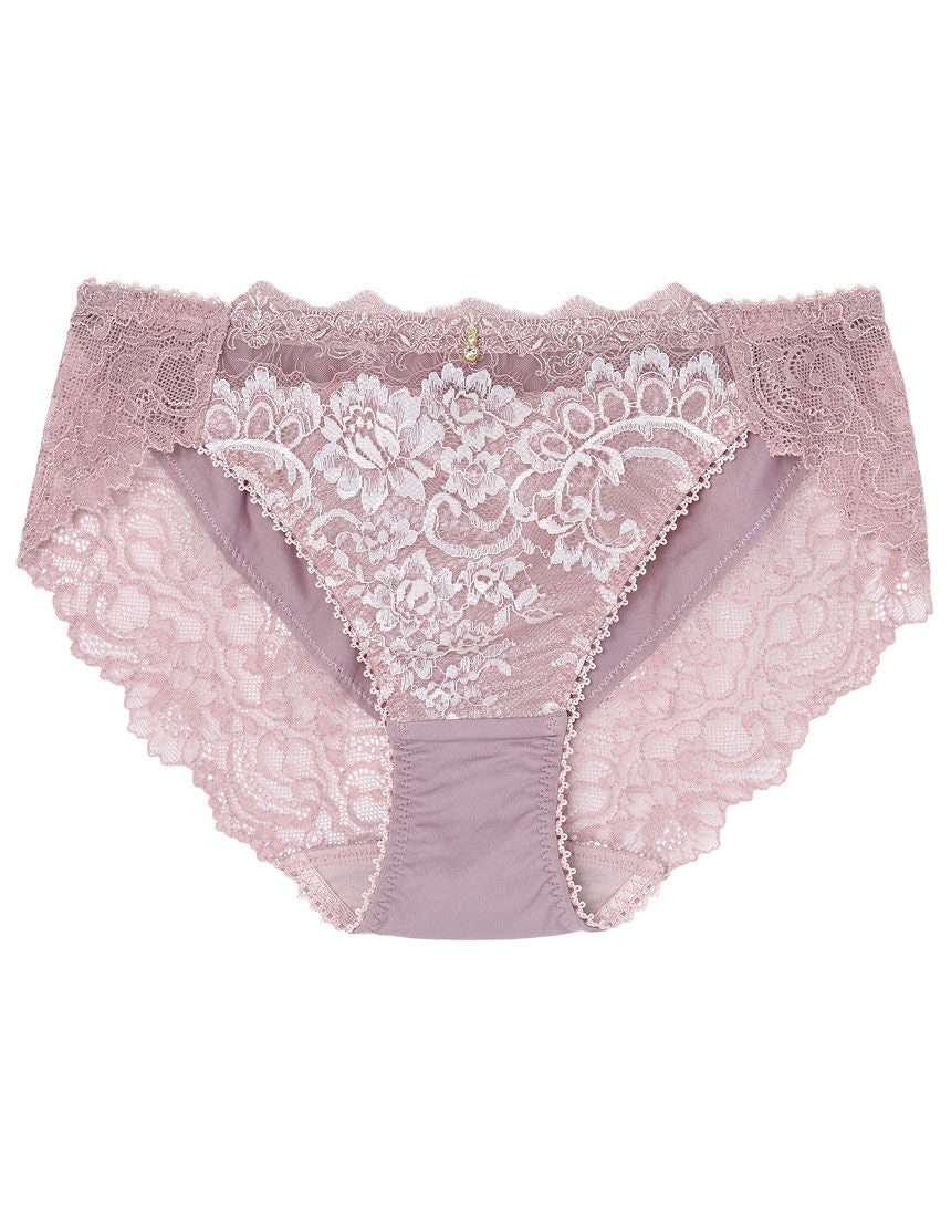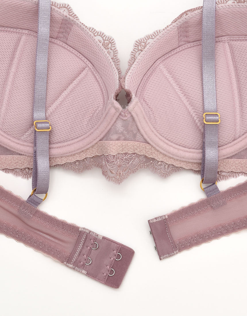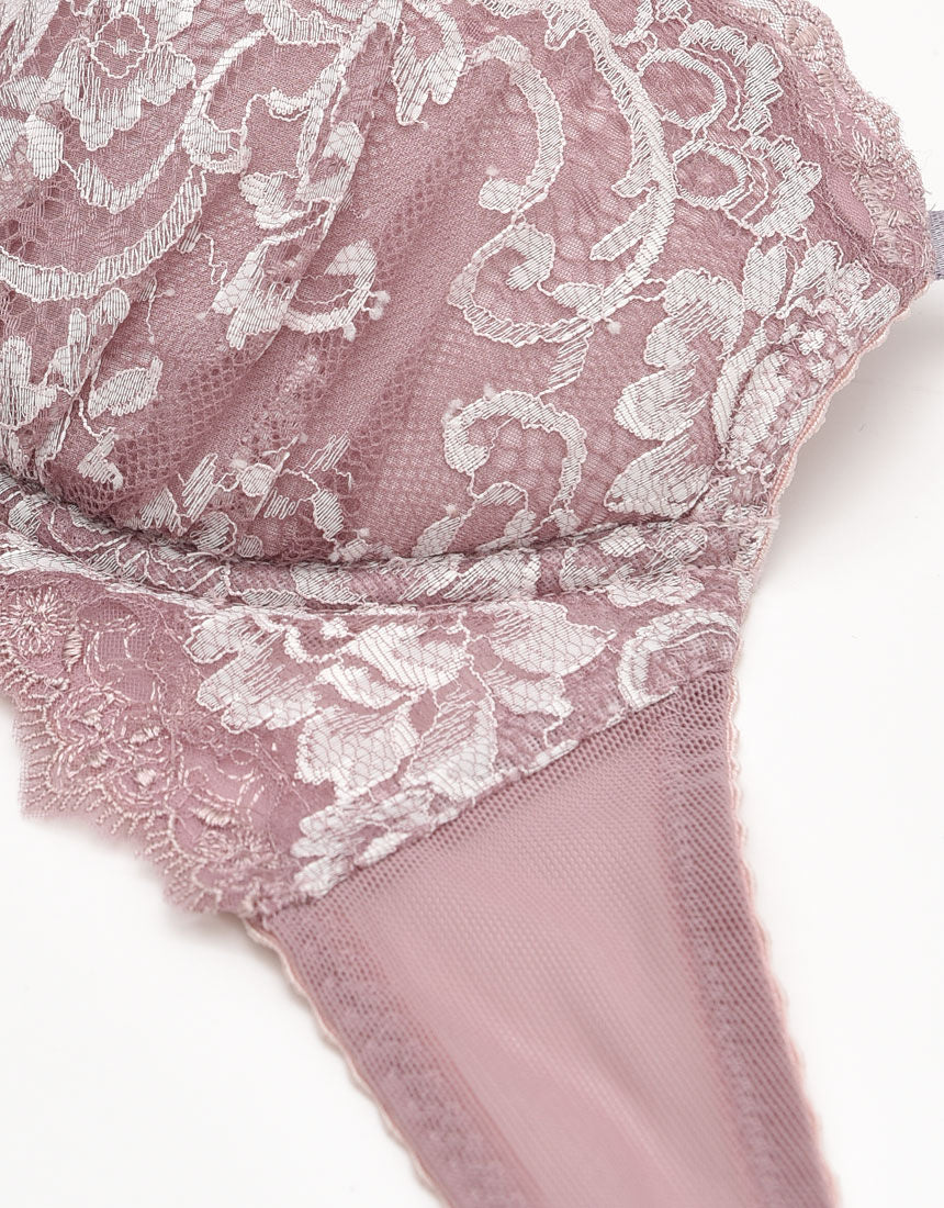 日本华歌尔Wacoal梅子色花卉刺绣文胸75C + 内裤M