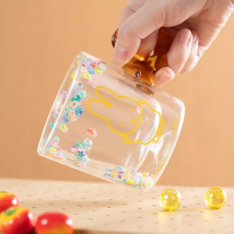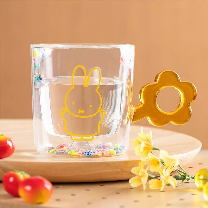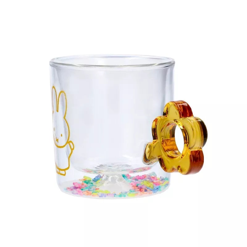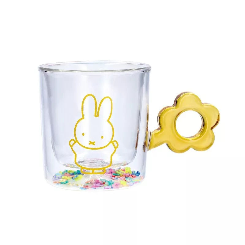 日本miffy兔米菲花朵手柄双层玻璃杯马克杯 黄色 250ml