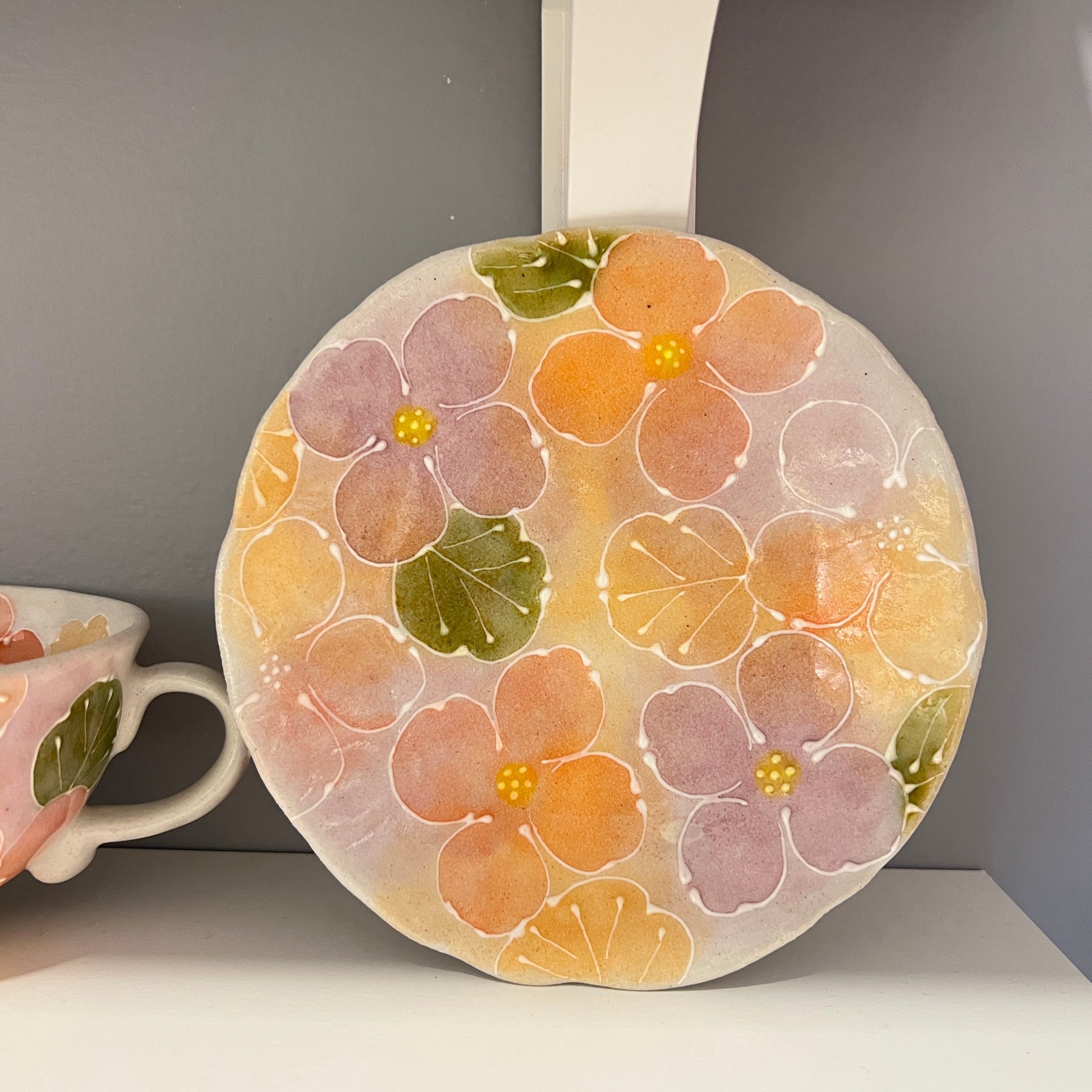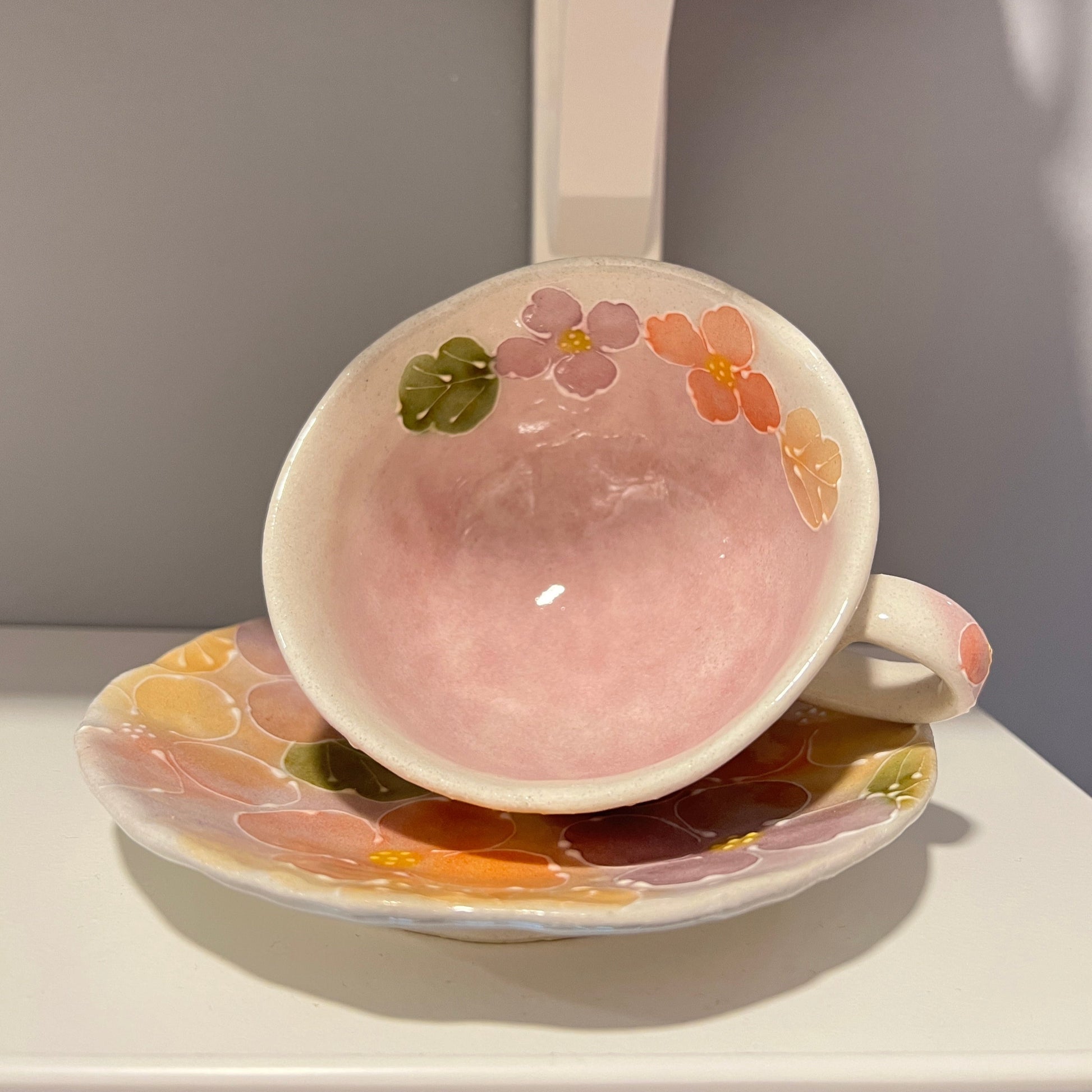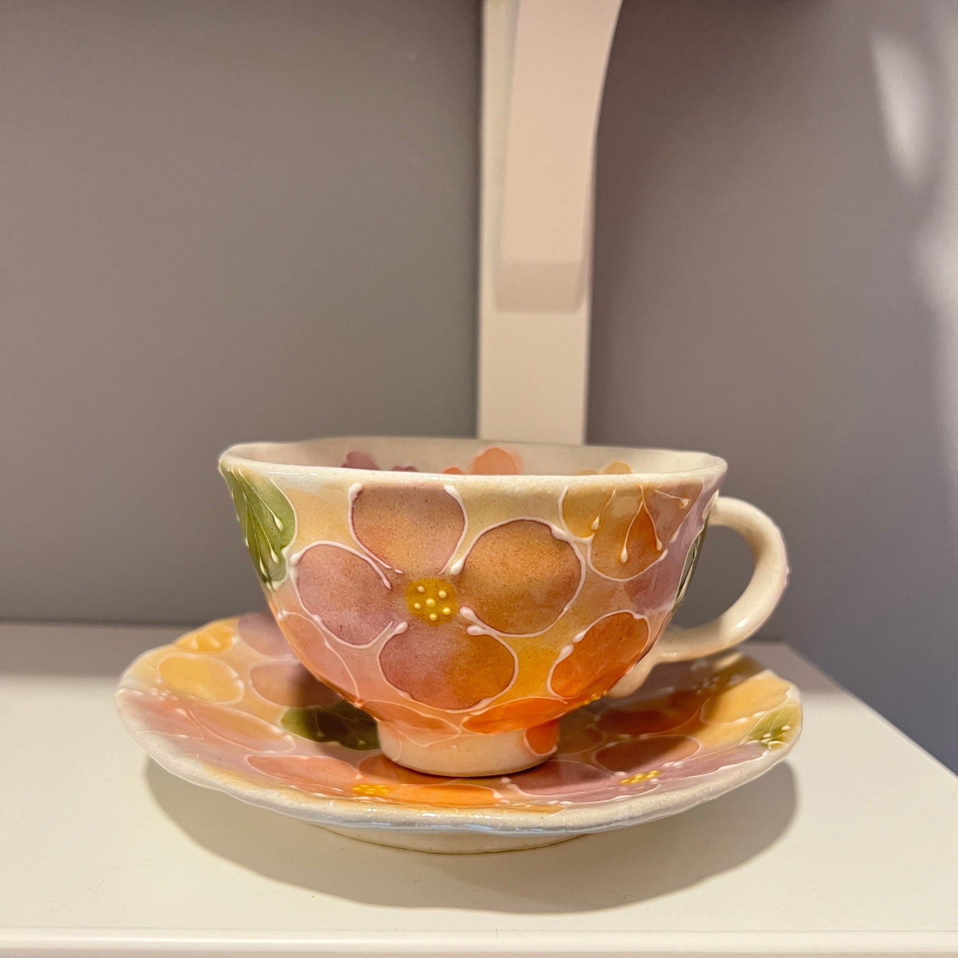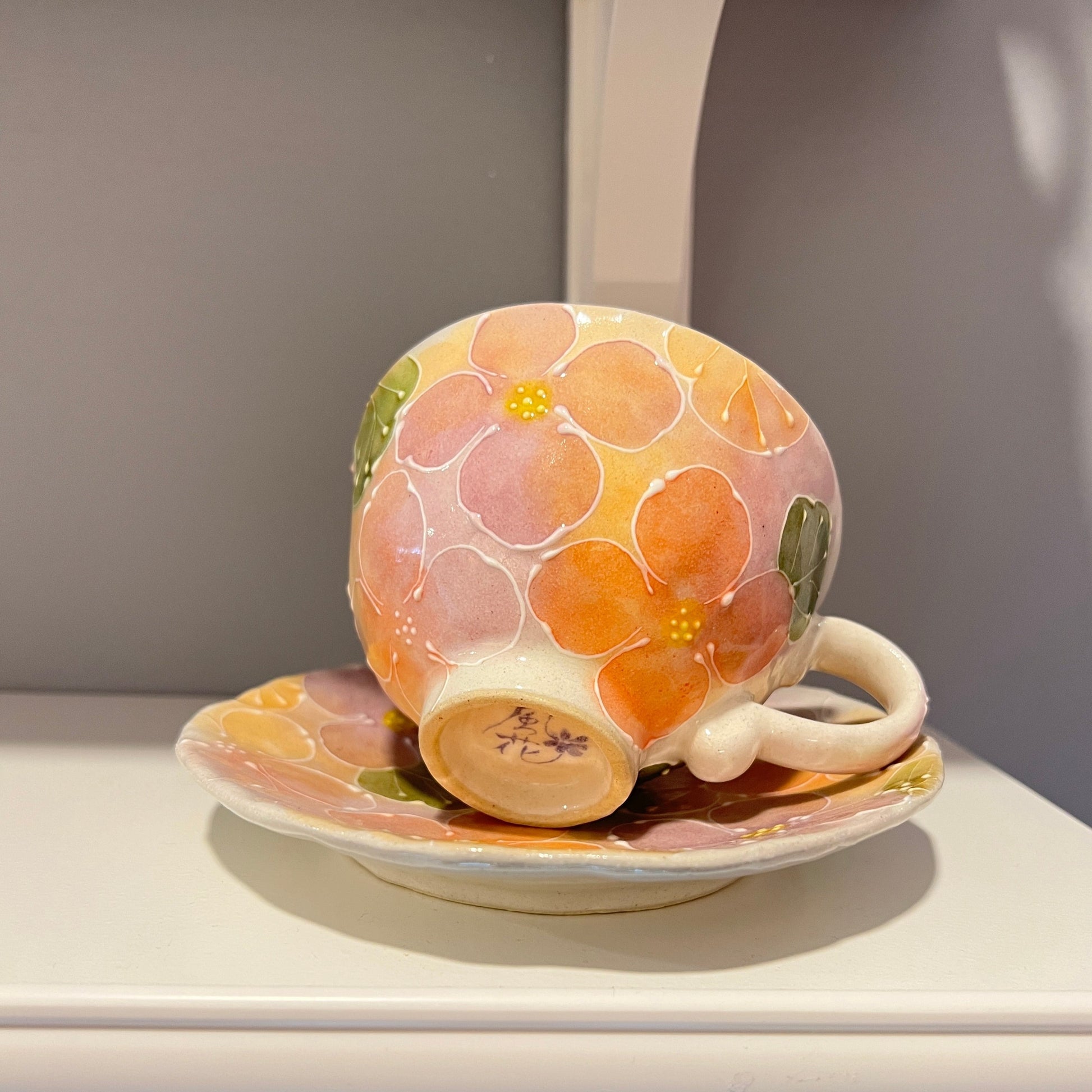 日本濑户烧手绘繁花马克杯+碟套装