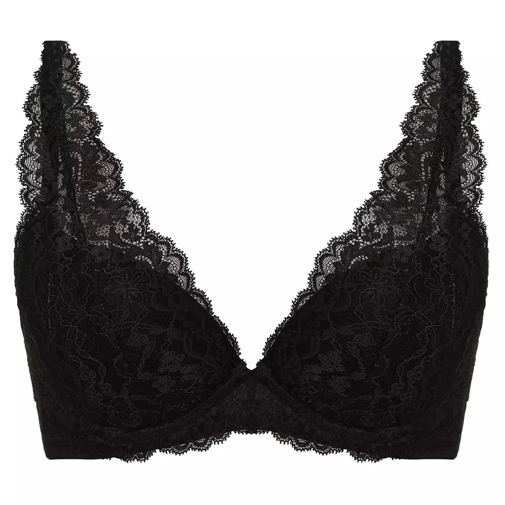 日本黛安芬黑色刺绣蕾丝无钢圈内衣 75C