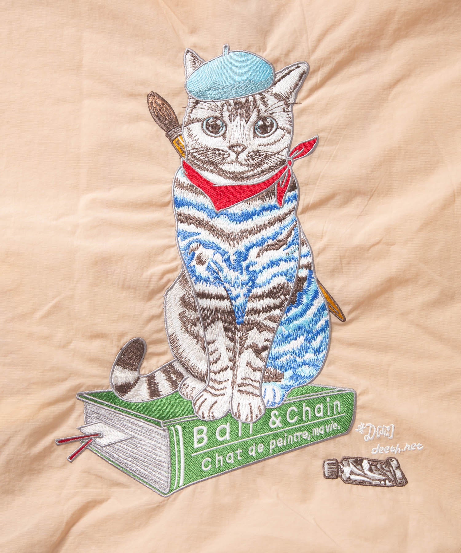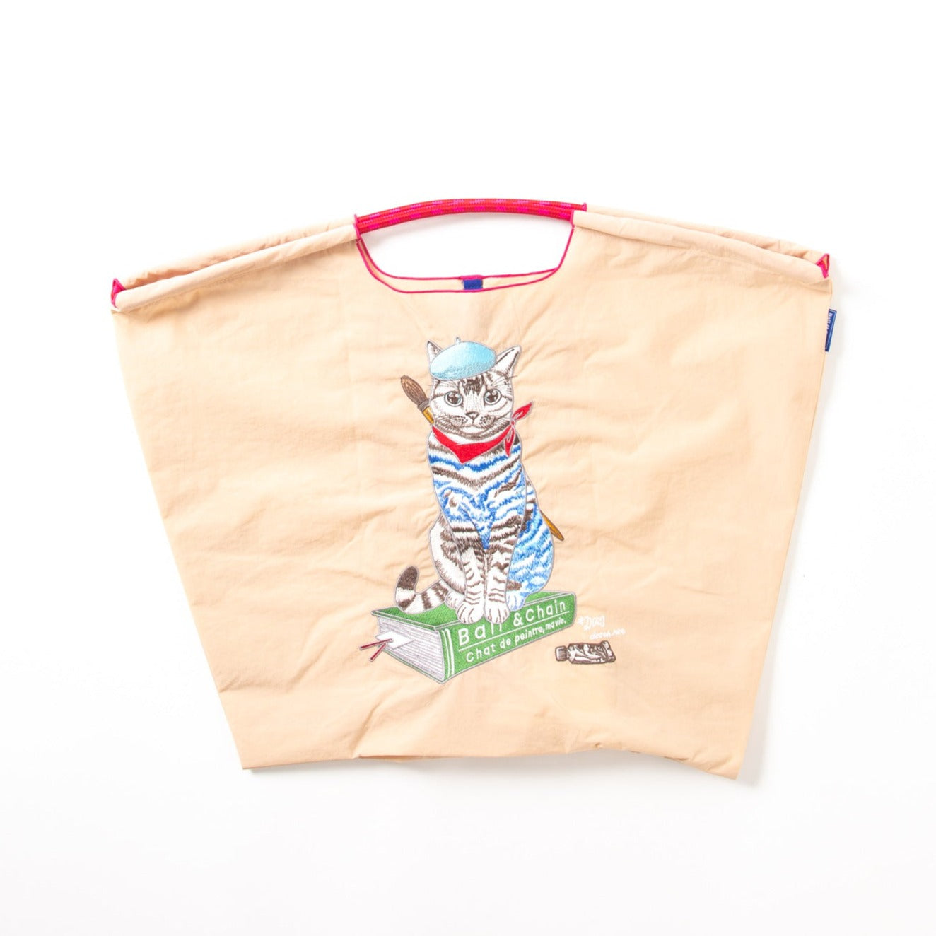 日本Ball & Chain 单肩手拎刺绣尼龙包 画家猫咪 卡其色L号