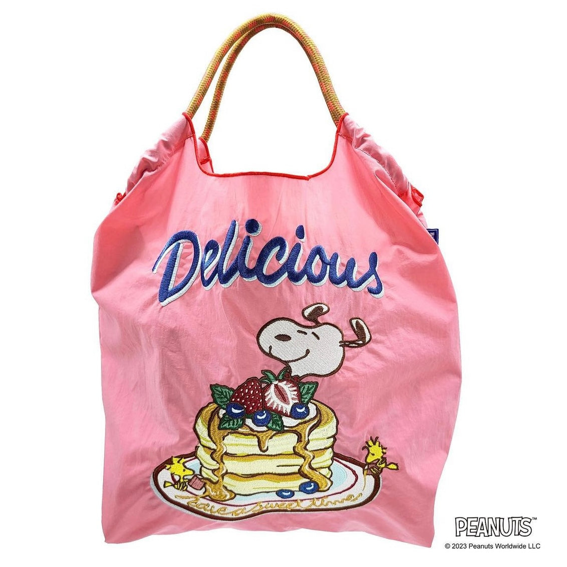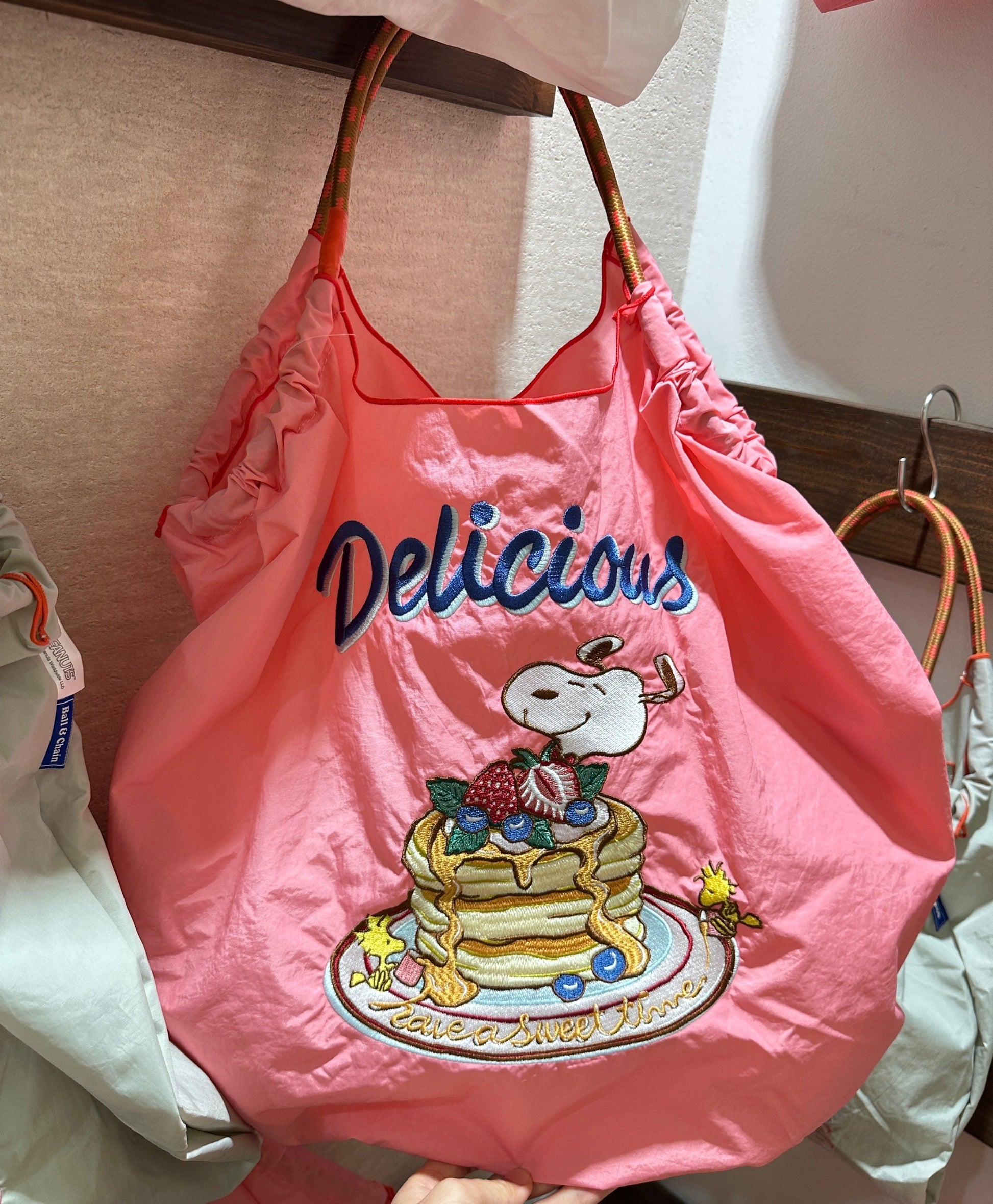 日本Ball & Chain 单肩手拎刺绣尼龙包 史努比联名 粉色舒芙蕾松饼 L号