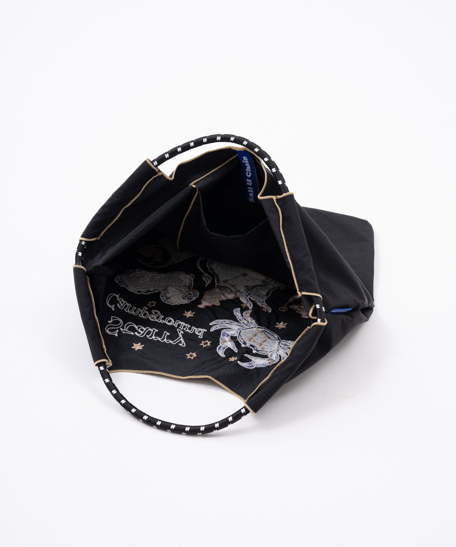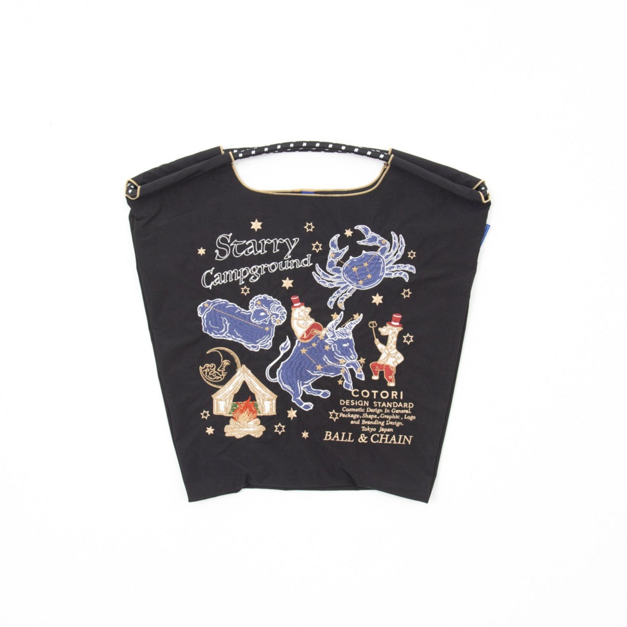 日本Ball & Chain 单肩手拎刺绣尼龙包 黑色星座星空营地 M号