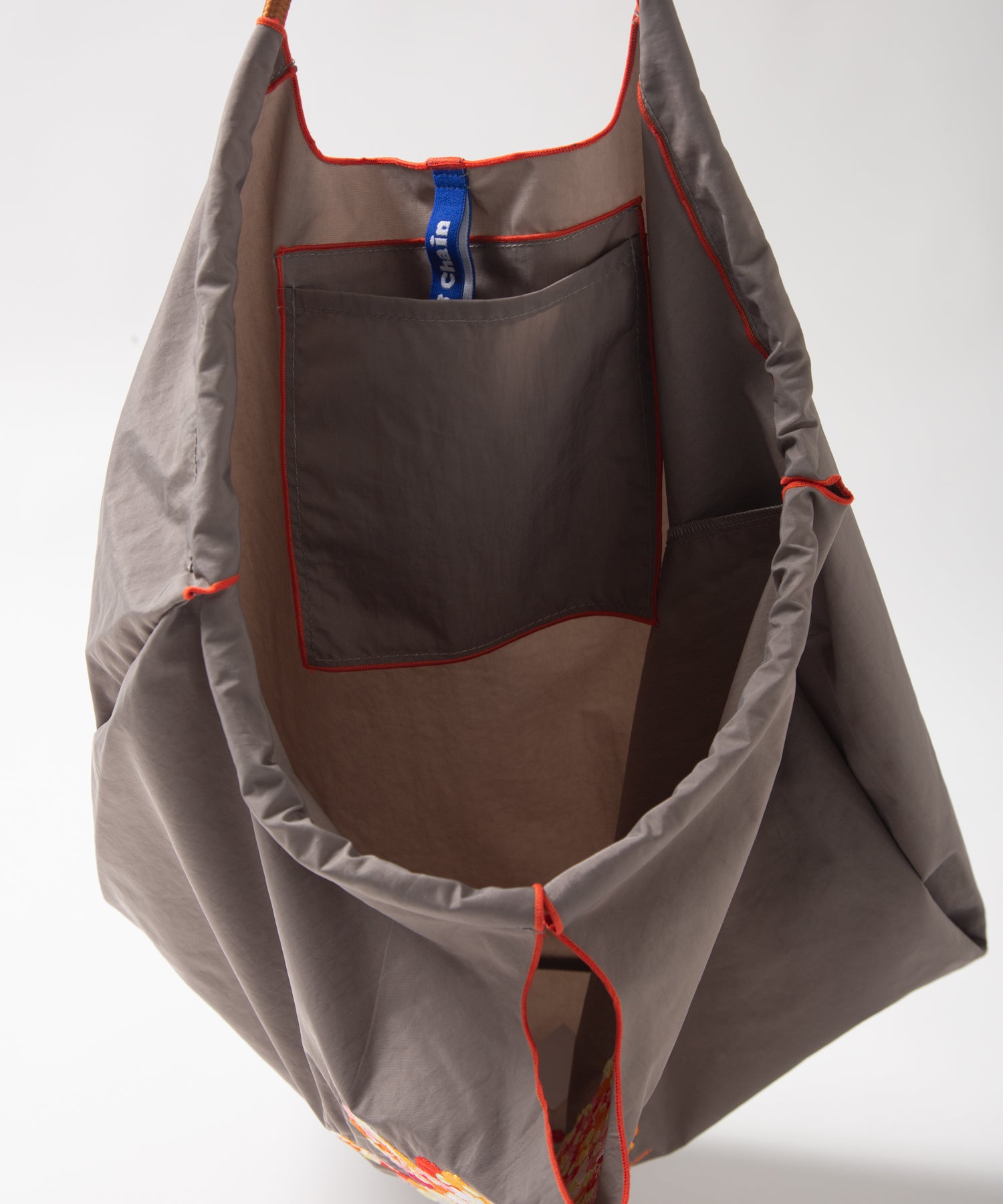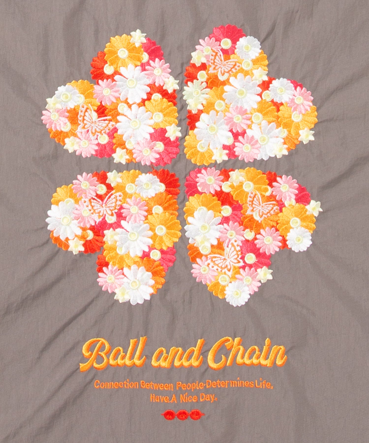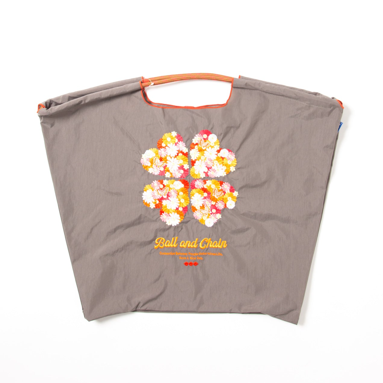 日本Ball & Chain 单肩手拎刺绣尼龙包 棕色四叶草款 L号