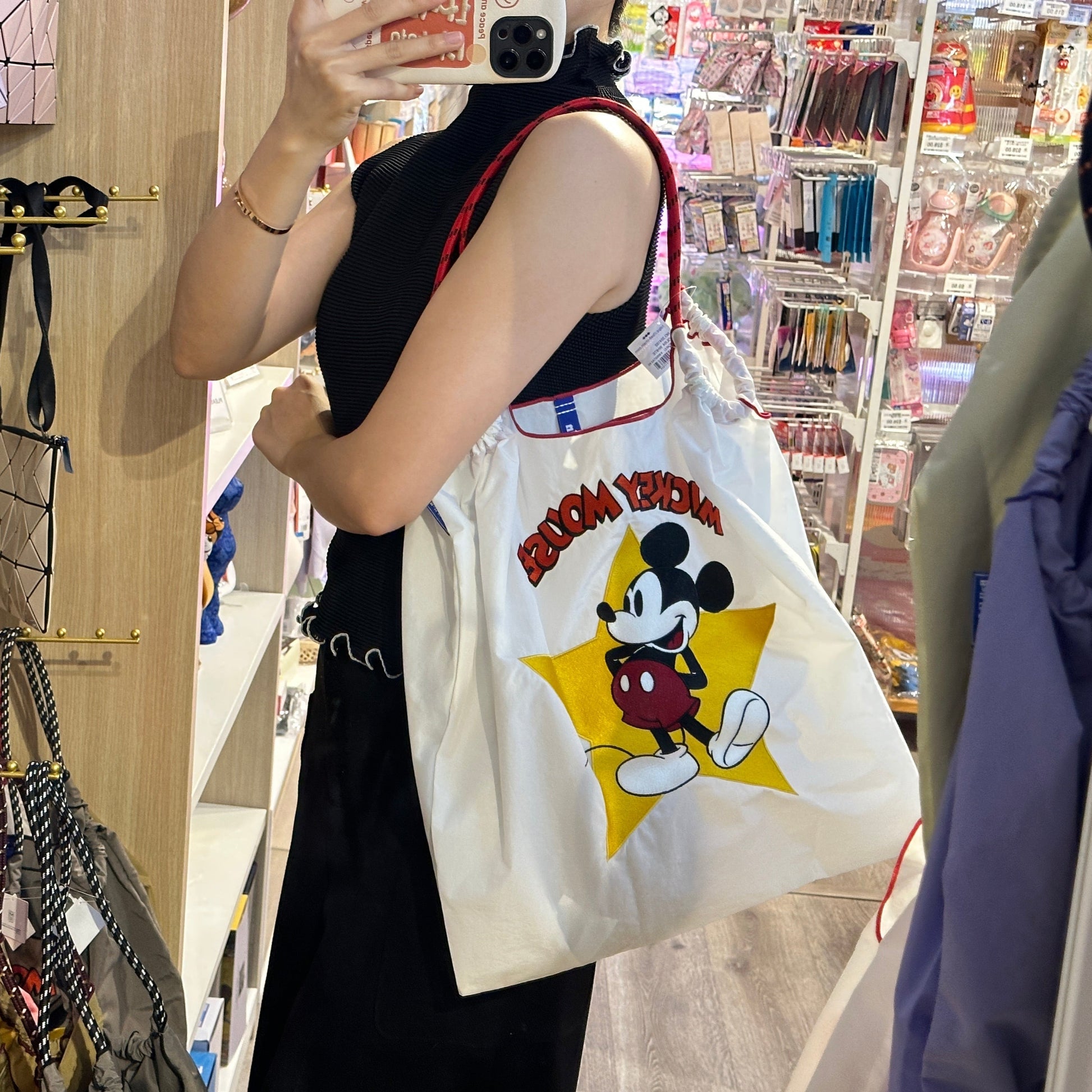 日本Ball & Chain 米奇联名限定 单肩手拎刺绣尼龙包 米奇L号 白色