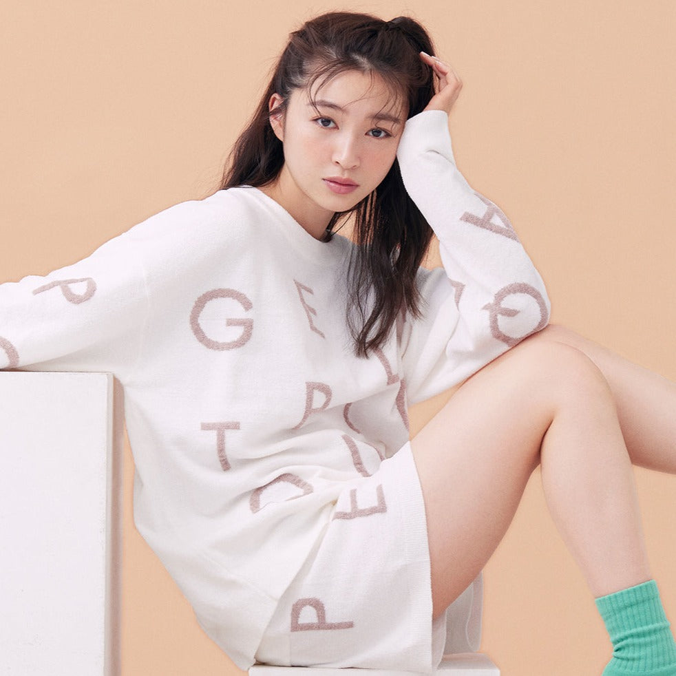 日本Gelato Pique字母短绒冰淇淋睡衣外穿长袖上衣 女码均码