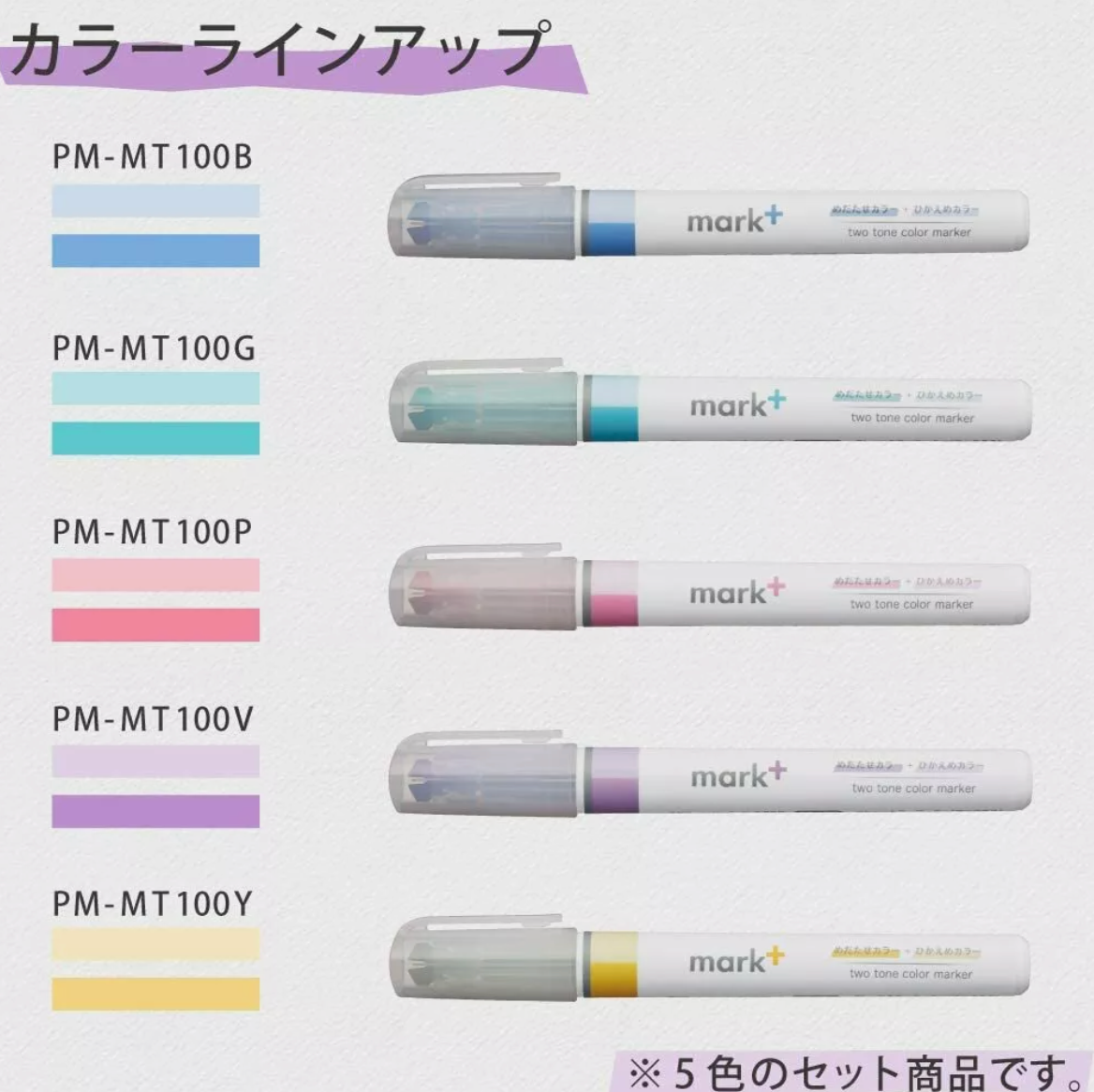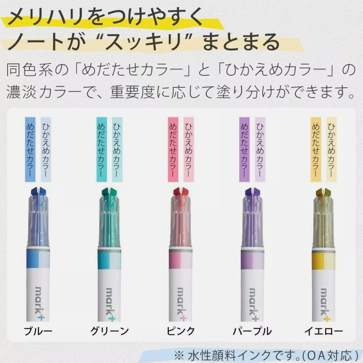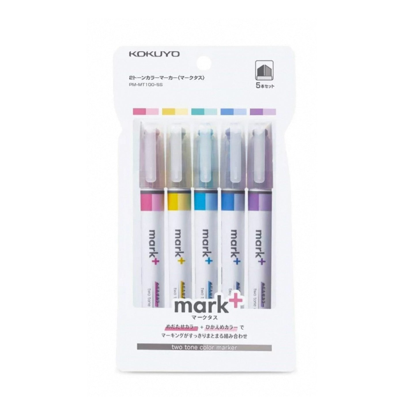 日本KOKUYO国誉双头马克笔Mark+双头深浅双色彩色荧光笔重点标记 5支装