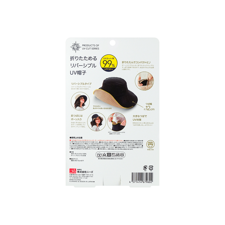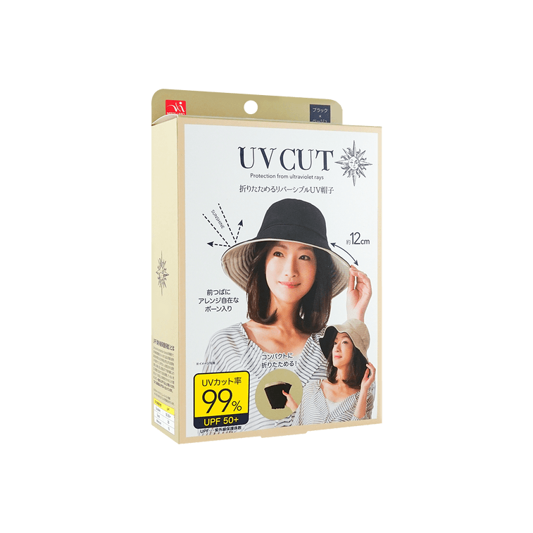 日本UV CUT可折叠抗UV双面防晒渔夫帽 黑+米白色