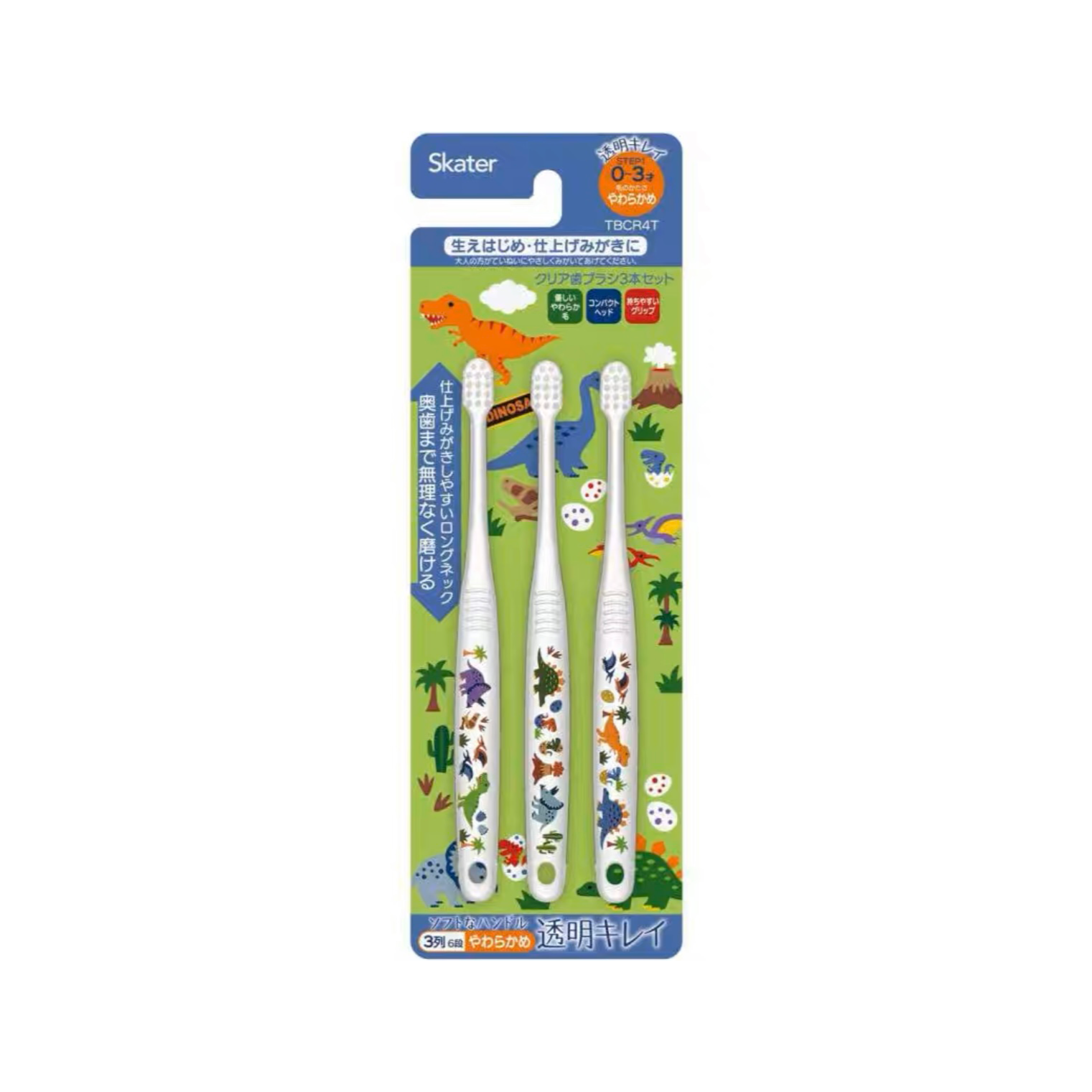 日本Skater儿童卡通小恐龙牙刷3-5岁3支装