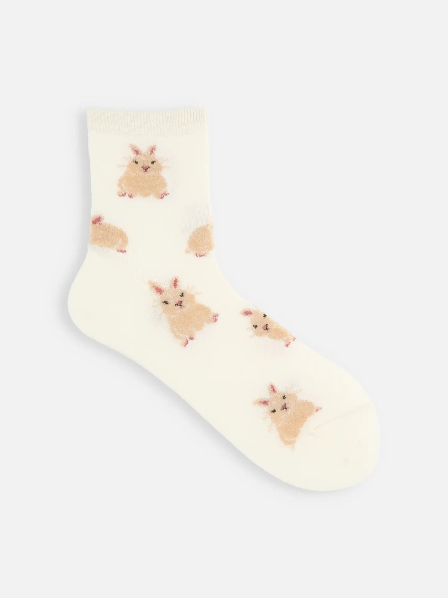 日本Tabio靴下屋 可爱兔子刺绣羊毛混纺短袜 白色 22.5cm-24.5cm