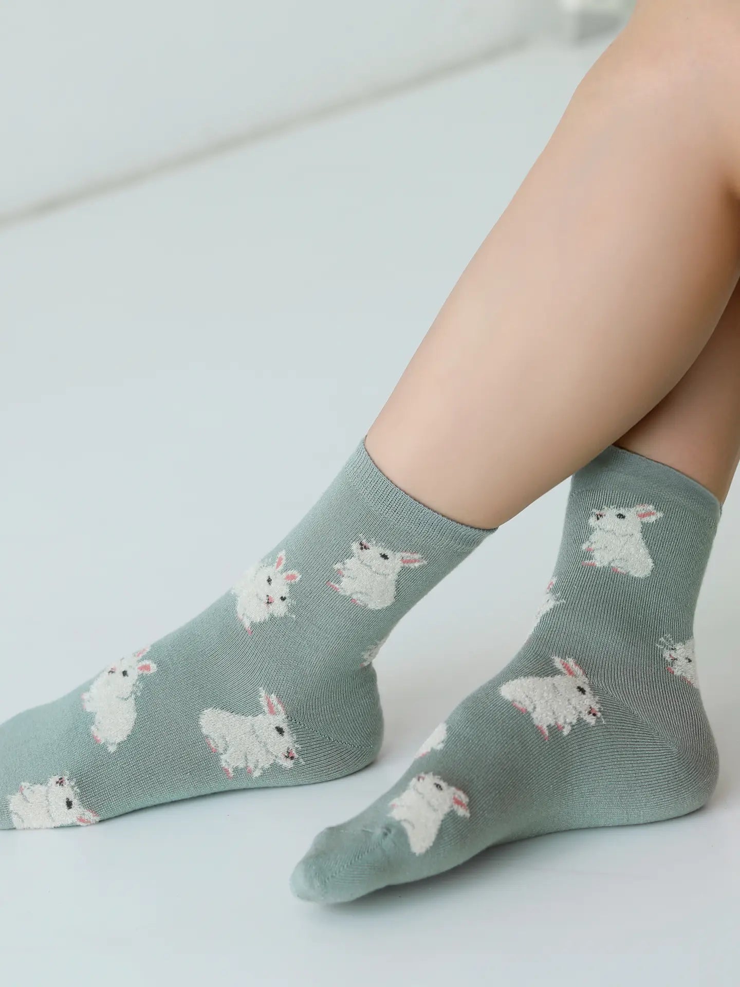 日本Tabio靴下屋 可爱兔子刺绣羊毛混纺短袜 蓝色 22.5cm-24.5cm