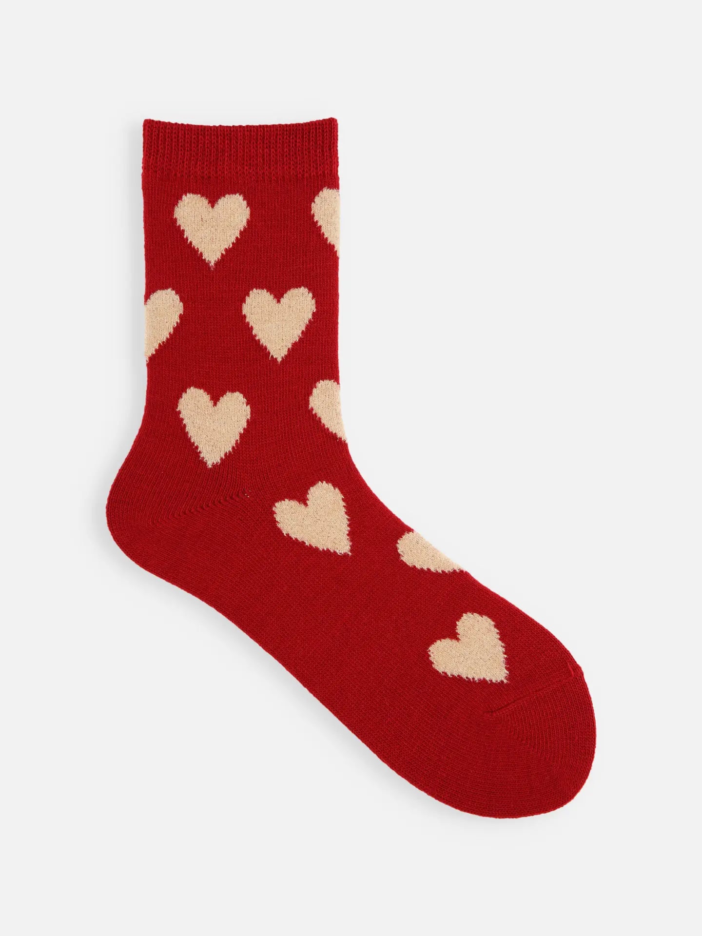 日本Tabio靴下屋 酒红色爱心羊毛混纺短袜 22.5cm-24.5cm