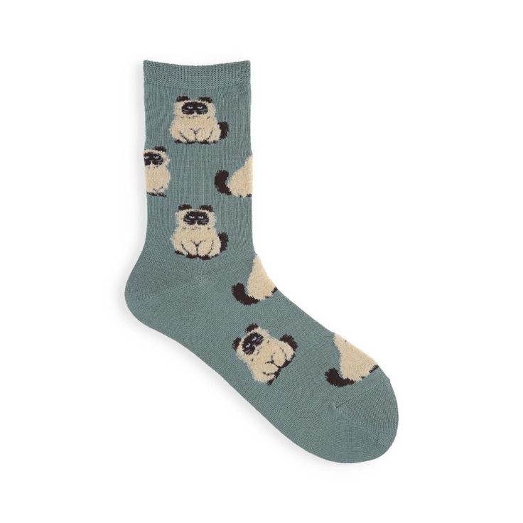 日本Tabio X Miffy 蓝绿色暹罗猫刺绣羊毛混纺短袜 22.5cm-24.5cm