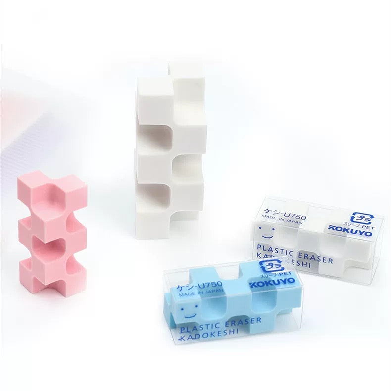 日本Kokuyo国誉多方角橡皮简约清新创意积木橡皮小巧美术魔方绘图橡皮两块装白色蓝色
