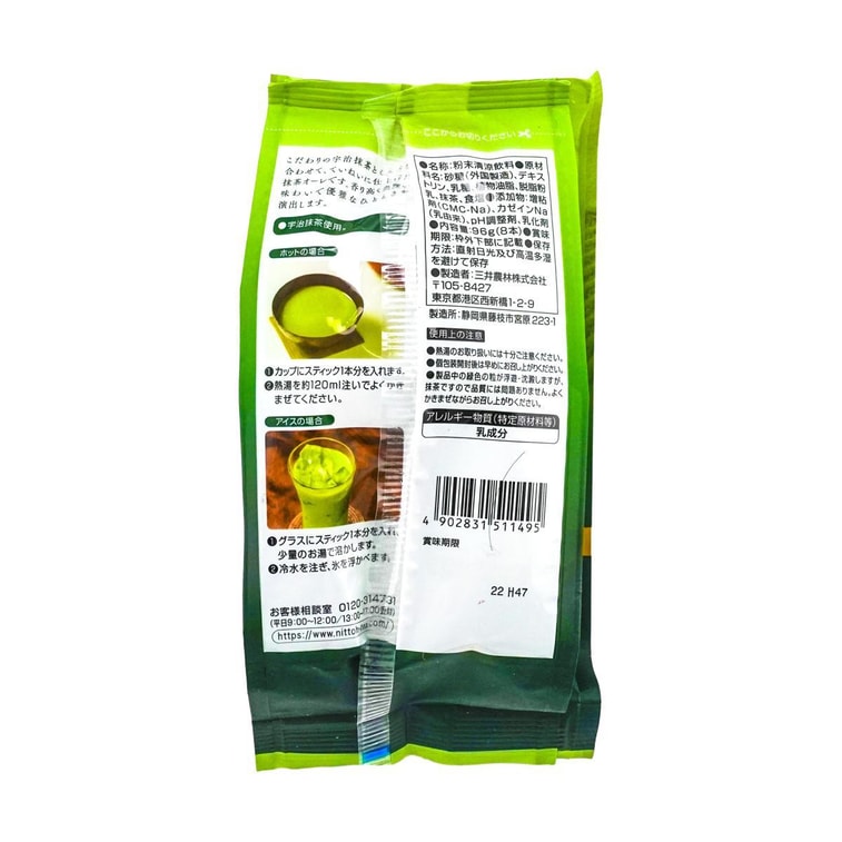 日本NITTOH日东红茶 宇治抹茶欧蕾 抹茶拿铁冲饮 8条装 96g